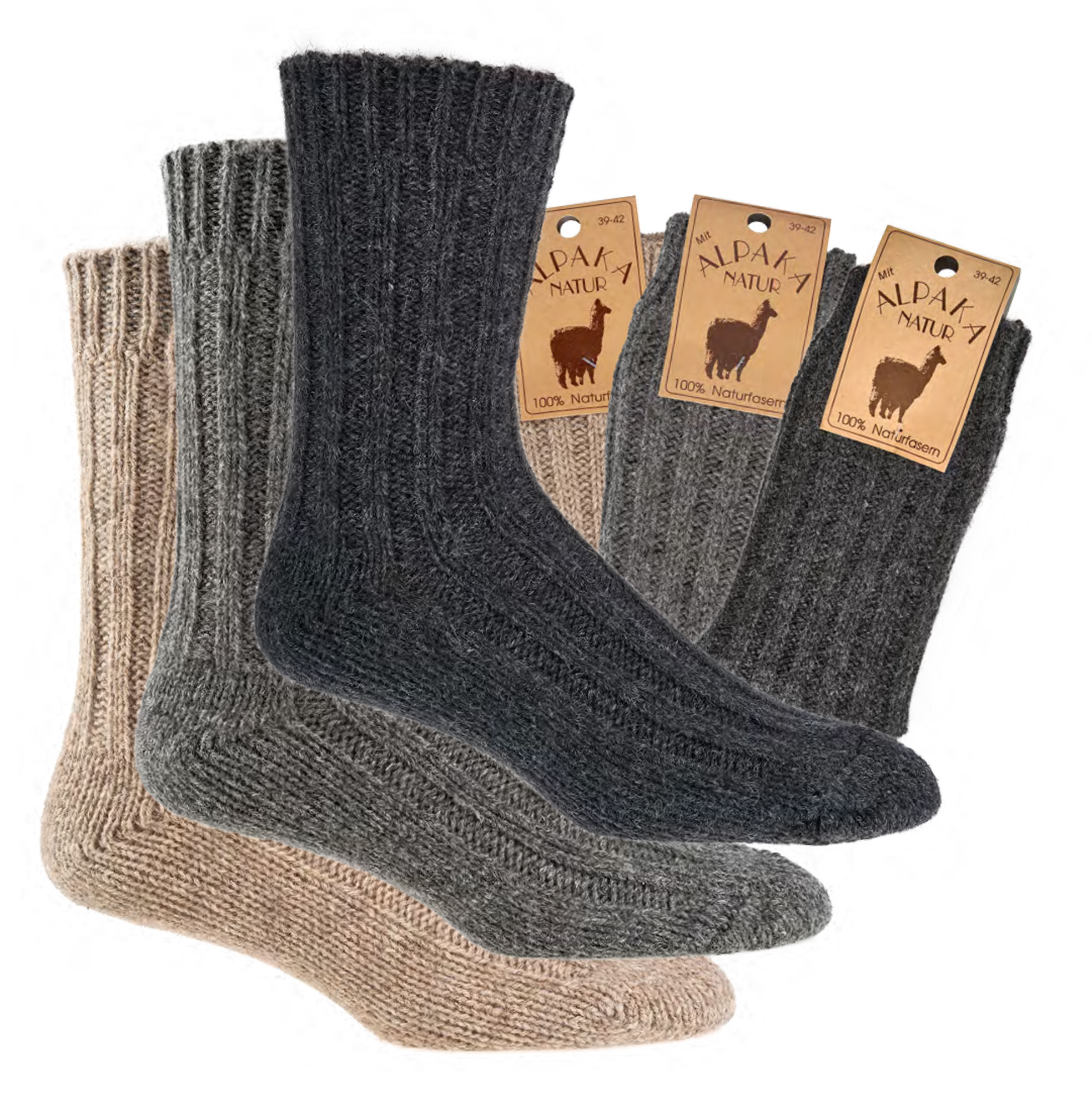 Schöne „Alpaka-flauschige“ Qualität, mit rutschsicherem ABS-Druck.